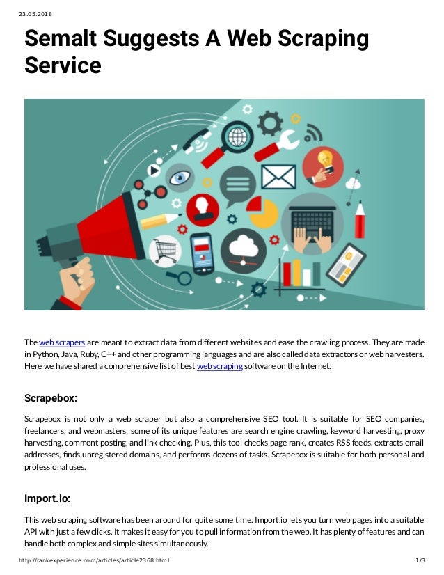 Wednesday, January 20, 2021There are many free web scraping tools. However, not all web scraping software is for non-programmers. The lists below are the best web scraping tools without coding skills at a low cost. The freeware listed below is easy to pick up and would satisfy most scraping needs with a reasonable amount of data requirement.